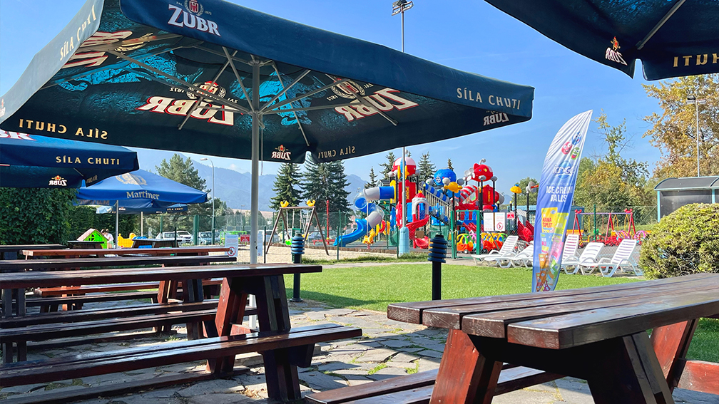 Bar a letný bar s terasou ponúkajú osviežujúce nápoje, pizzu, nanuky aj zmrzlinu.